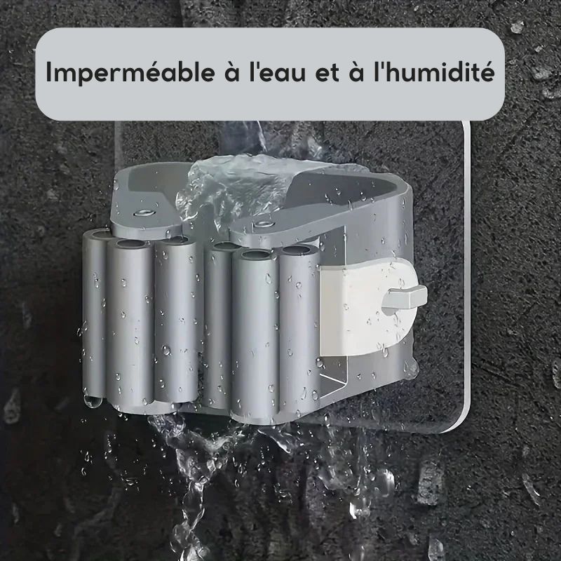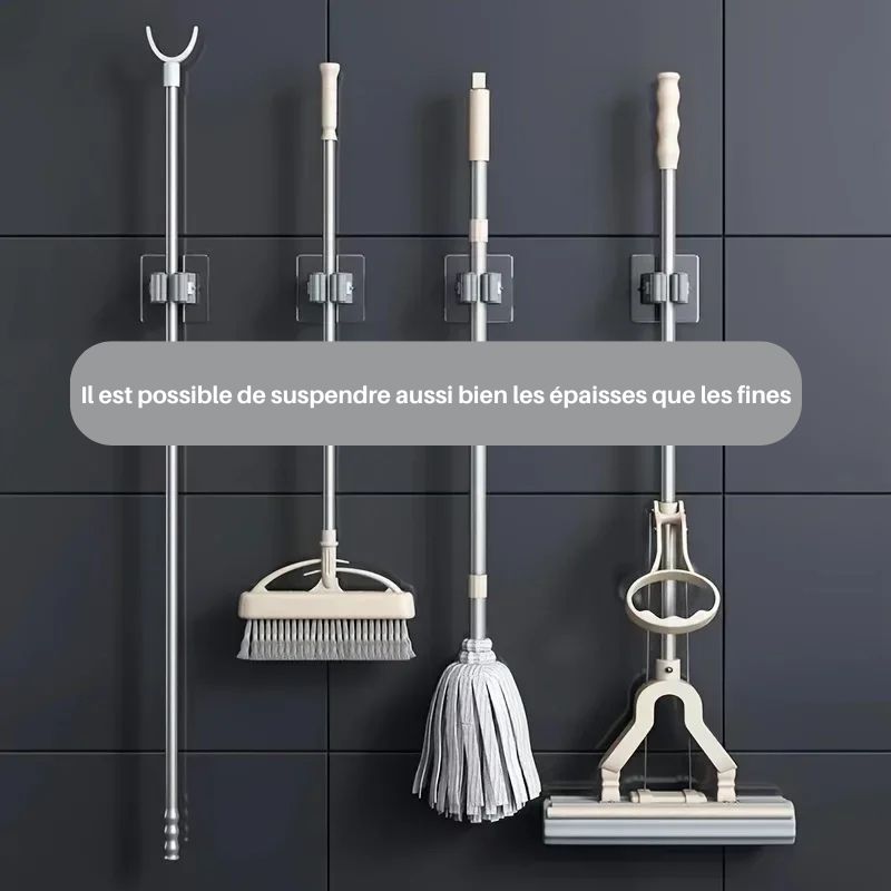 - Clip antiglisse : Maintient fermement les balais, vadrouilles, parapluies (jusqu’à 3 cm de diamètre)