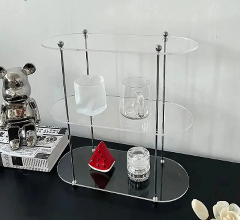 - Ce support à 3 niveaux allie transparence moderne et structure métallique, parfait pour sublimer votre espace