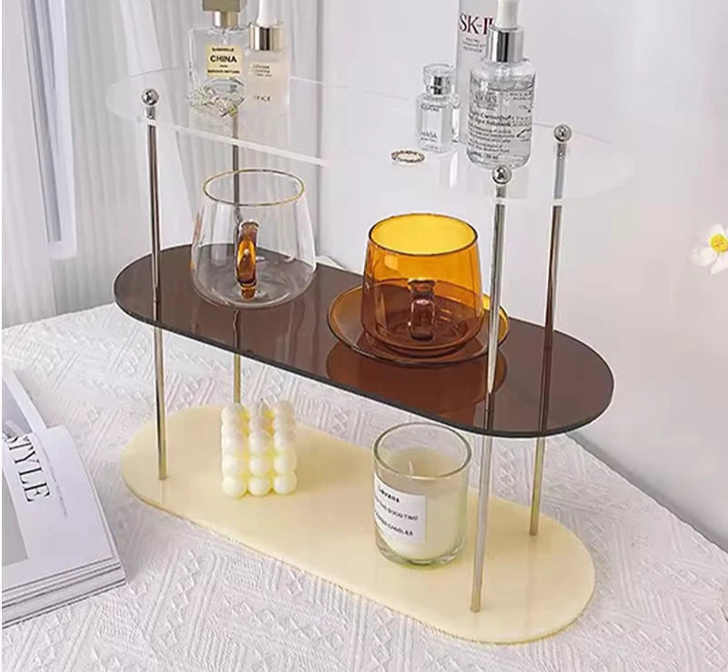 - Ce support à 3 niveaux allie transparence moderne et structure métallique, parfait pour sublimer votre espace